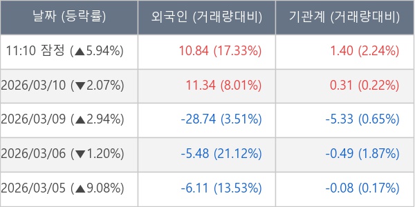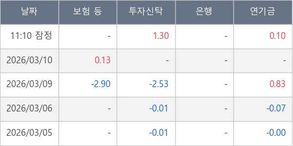 [표] 주요 기관별 순매매량 (단위 만주)