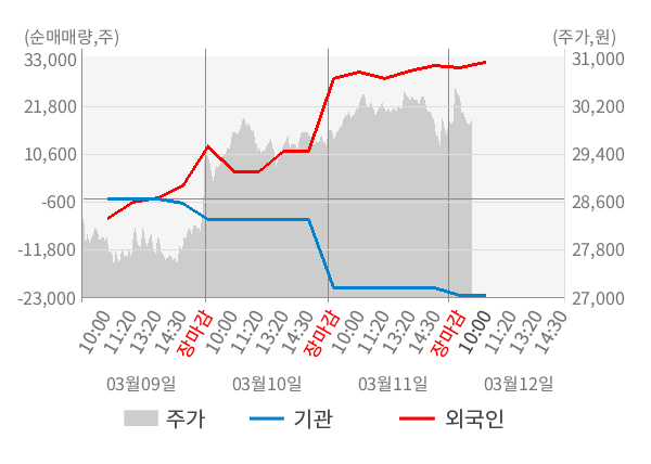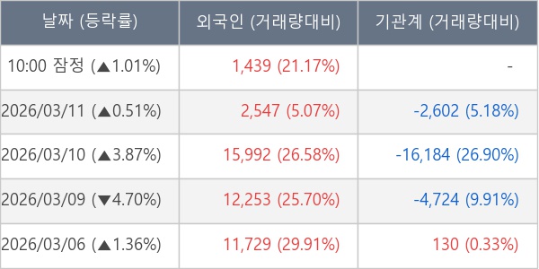 [표] 외국인ㆍ기관 순매매량 (단위 주)