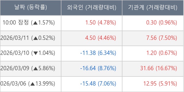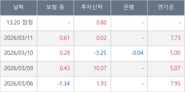 [표] 주요 기관별 순매매량 (단위 만주)