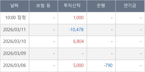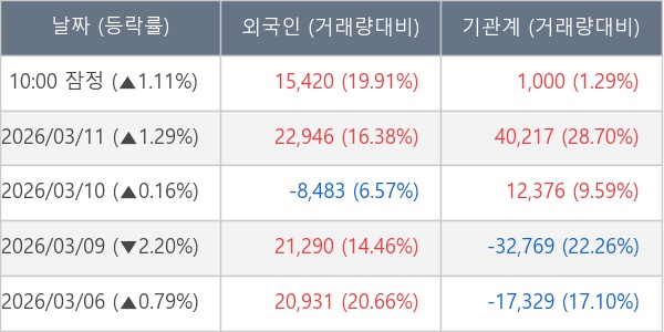 [표] 주요 기관별 순매매량 (단위 주)