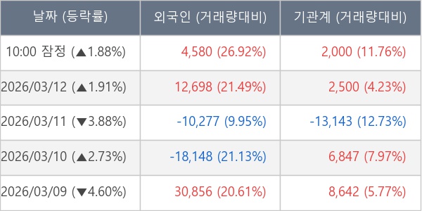 [표] 외국인ㆍ기관 순매매량 (단위 주)