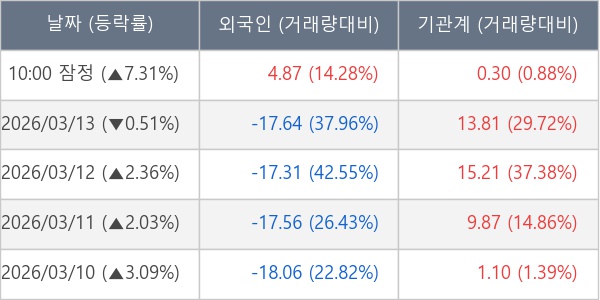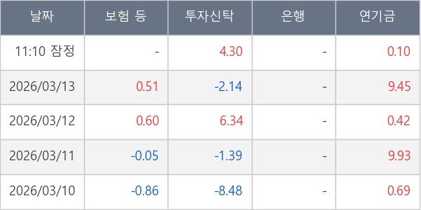 [표] 주요 기관별 순매매량 (단위 만주)