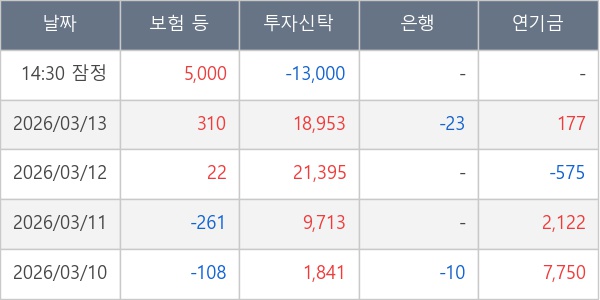 [표] 주요 기관별 순매매량 (단위 주)