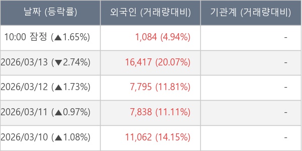 [표] 외국인ㆍ기관 순매매량 (단위 주)