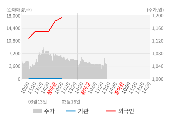 [서울=뉴스핌] 로보뉴스 = 16일 10시 15분 현재 뉴보텍(060260)은 전일 대비 1.65% (현재가 1,046원) 상승했고, 외국인이 최근 8일 연속 순매수(누적 52,344주, 잠정) 행진을 하고 있다.