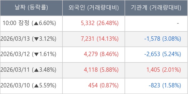 [표] 외국인ㆍ기관 순매매량 (단위 주)