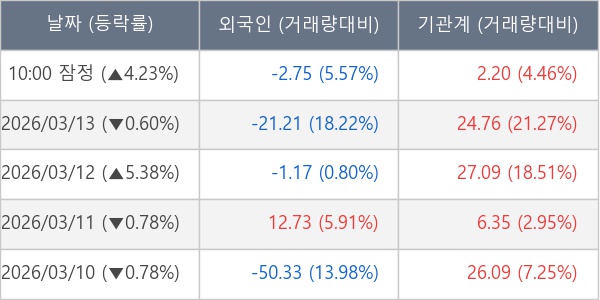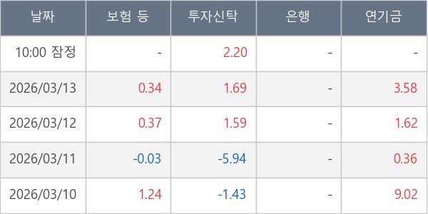 [표] 주요 기관별 순매매량 (단위 만주)