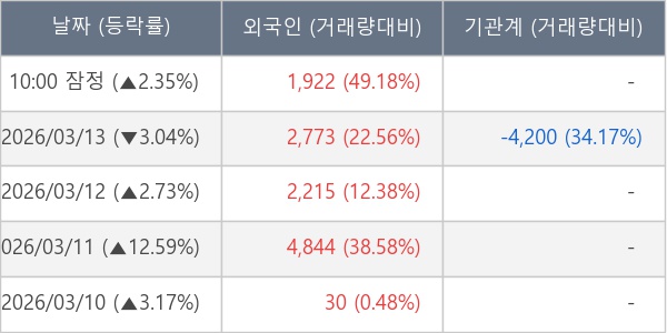 [표] 외국인ㆍ기관 순매매량 (단위 주)