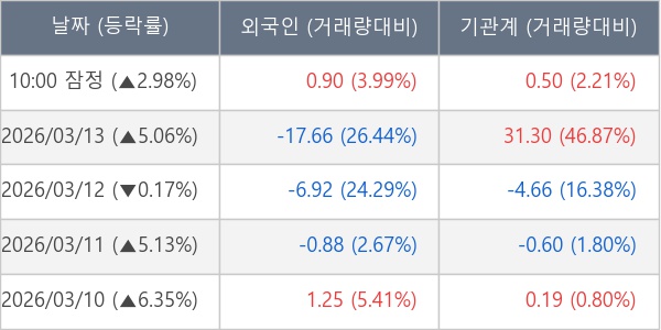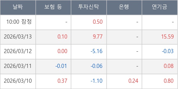 [표] 주요 기관별 순매매량 (단위 만주)