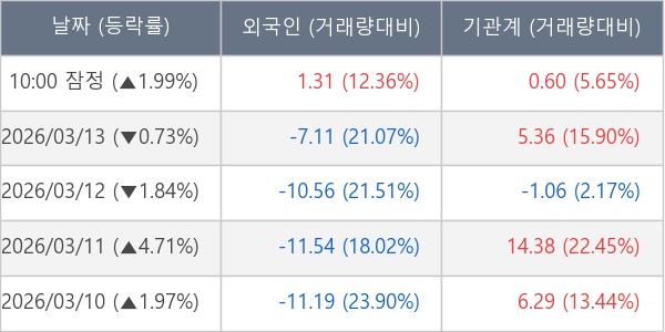 [표] 외국인ㆍ기관 순매매량 (단위 만주)