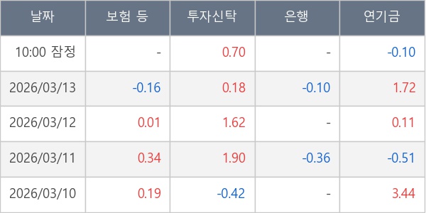 ※ 장중 매매동향은 잠정치이므로 실제 매매동향과 차이가 발생할수 있음
