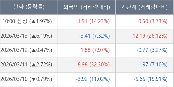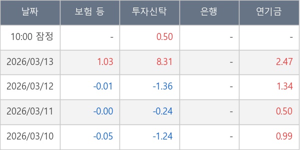 [표] 주요 기관별 순매매량 (단위 만주)