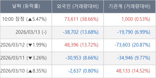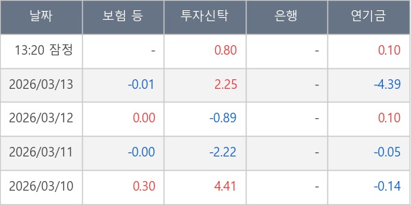 [표] 주요 기관별 순매매량 (단위 주)
