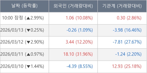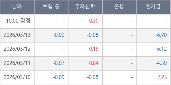 [표] 주요 기관별 순매매량 (단위 만주)