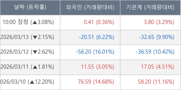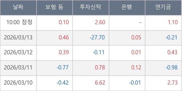 [표] 주요 기관별 순매매량 (단위 만주)
