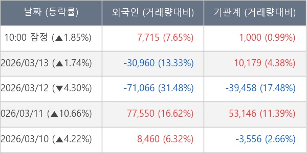 ※ 사모펀드 등 일부 기관의 순매매량은 표시되지 않음