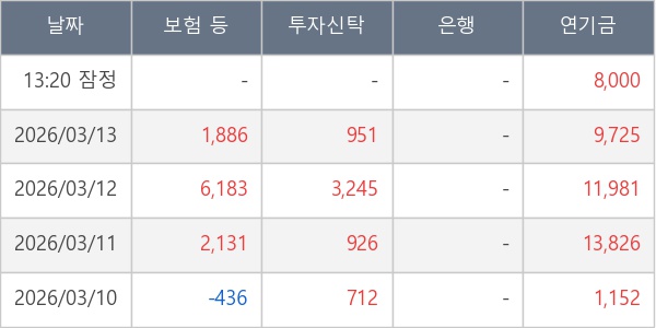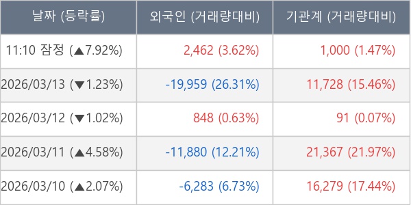 [표] 주요 기관별 순매매량 (단위 주)
