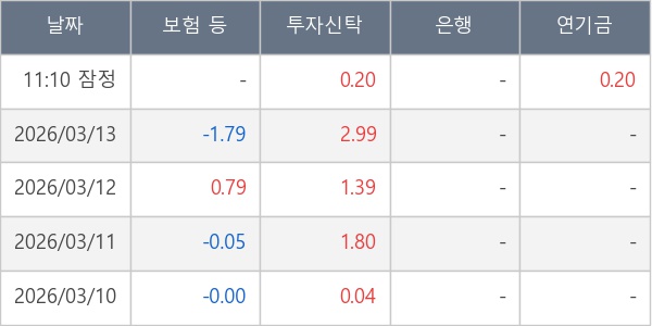 [표] 주요 기관별 순매매량 (단위 만주)