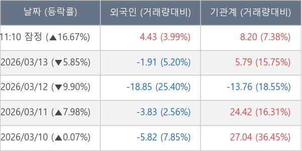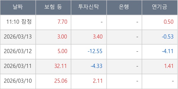 [표] 주요 기관별 순매매량 (단위 만주)
