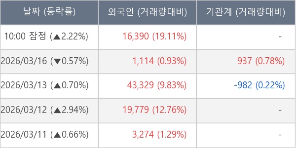 [표] 외국인ㆍ기관 순매매량 (단위 주)