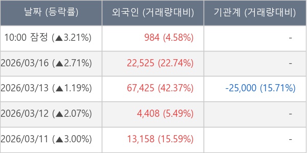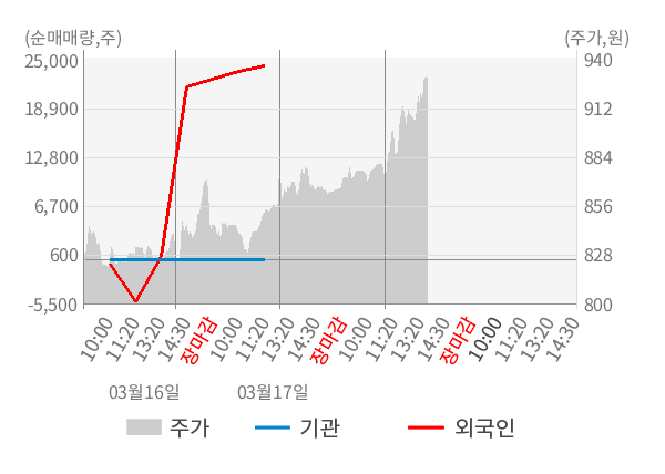 [표] 외국인ㆍ기관 순매매량 (단위 주)