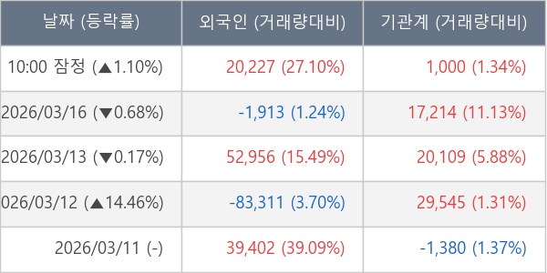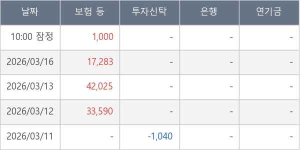 [표] 주요 기관별 순매매량 (단위 주)