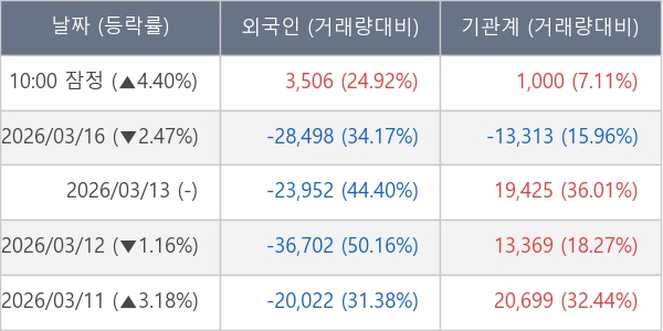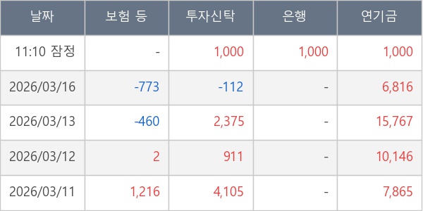 [표] 주요 기관별 순매매량 (단위 주)
