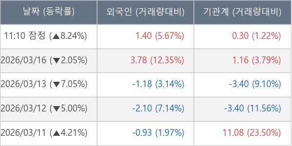 [표] 주요 기관별 순매매량 (단위 만주)