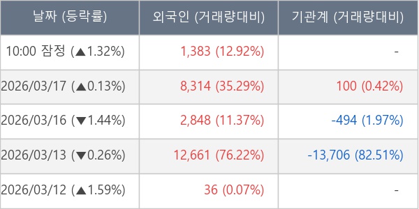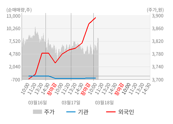 [표] 외국인ㆍ기관 순매매량 (단위 주)