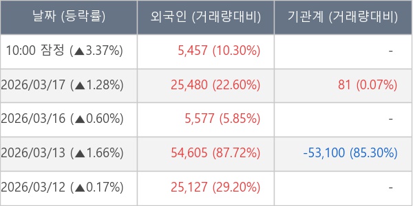[표] 외국인ㆍ기관 순매매량 (단위 주)