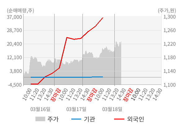[서울=뉴스핌] 로보뉴스 = 18일 10시 15분 현재 웰크론한텍(076080)은 전일 대비 3.37% (현재가 1,227원) 상승했고, 외국인이 최근 5일 연속 순매수(누적 11.62만 주, 잠정) 행진을 하고 있다.