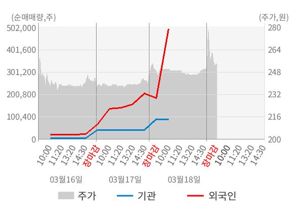 [표] 외국인ㆍ기관 순매매량 (단위 만주)