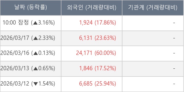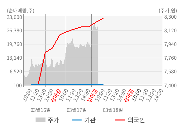 [표] 외국인ㆍ기관 순매매량 (단위 주)