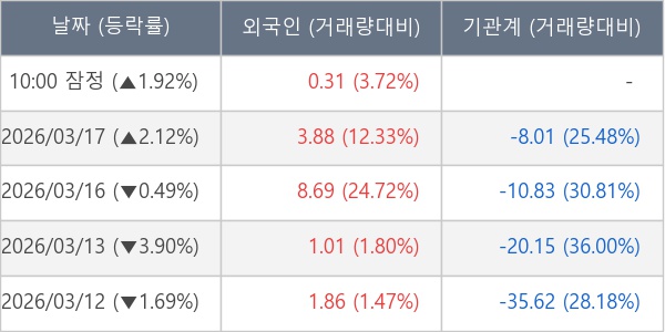 [표] 외국인ㆍ기관 순매매량 (단위 만주)