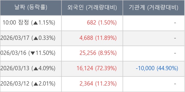 [표] 외국인ㆍ기관 순매매량 (단위 주)