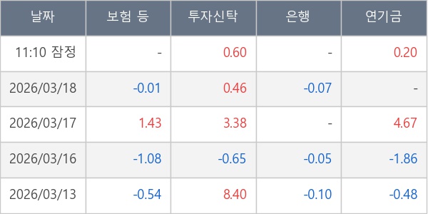 [표] 주요 기관별 순매매량 (단위 만주)