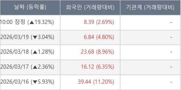 [표] 외국인ㆍ기관 순매매량 (단위 만주)
