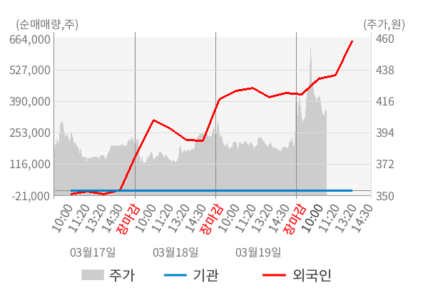 [서울=뉴스핌] 로보뉴스 = 20일 10시 15분 현재 플루토스(019570)는 전일 대비 19.32% (현재가 457원) 상승했고, 외국인이 최근 5일 연속 순매수(누적 94.47만 주, 잠정) 행진을 하고 있다.