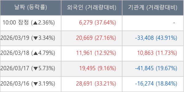 [표] 외국인ㆍ기관 순매매량 (단위 주)