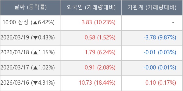 [표] 외국인ㆍ기관 순매매량 (단위 만주)