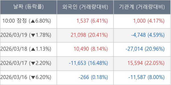 [표] 외국인ㆍ기관 순매매량 (단위 주)