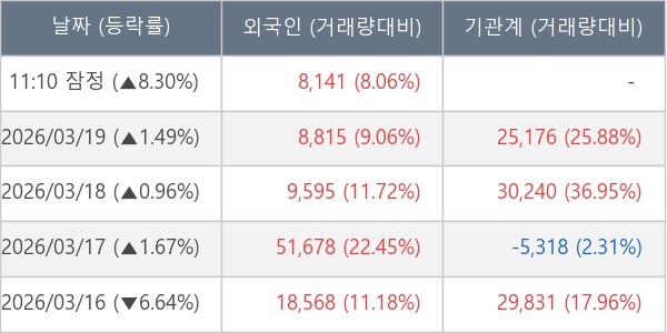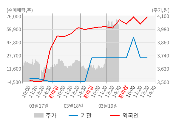 [표] 외국인ㆍ기관 순매매량 (단위 주)