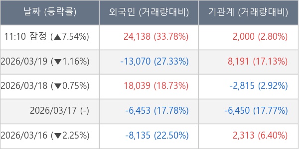 [표] 외국인ㆍ기관 순매매량 (단위 주)