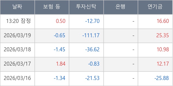 ※ 장중 매매동향은 잠정치이므로 실제 매매동향과 차이가 발생할수 있음
