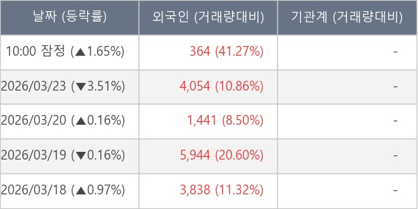 [표] 외국인ㆍ기관 순매매량 (단위 주)