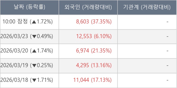 [표] 외국인ㆍ기관 순매매량 (단위 주)