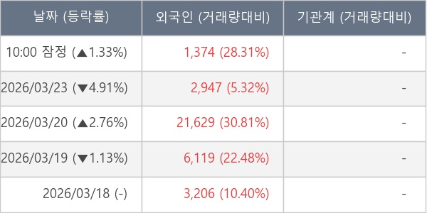 [표] 외국인ㆍ기관 순매매량 (단위 주)