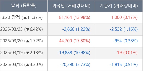 [표] 주요 기관별 순매매량 (단위 주)