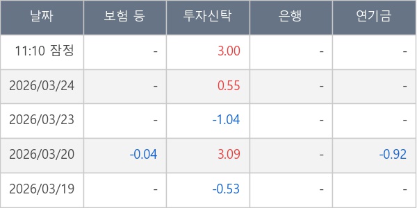 [표] 주요 기관별 순매매량 (단위 만주)