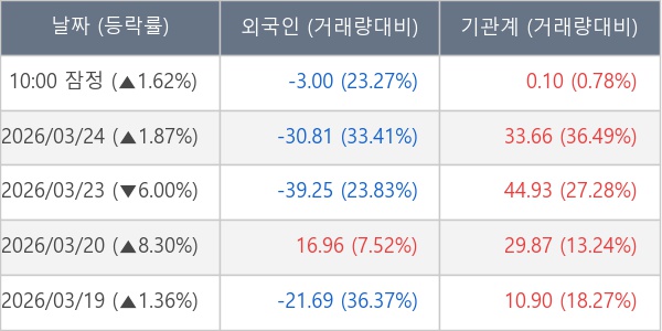 [표] 외국인ㆍ기관 순매매량 (단위 만주)